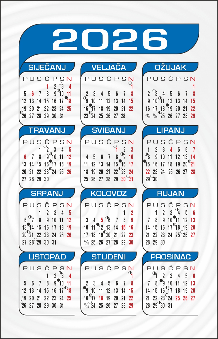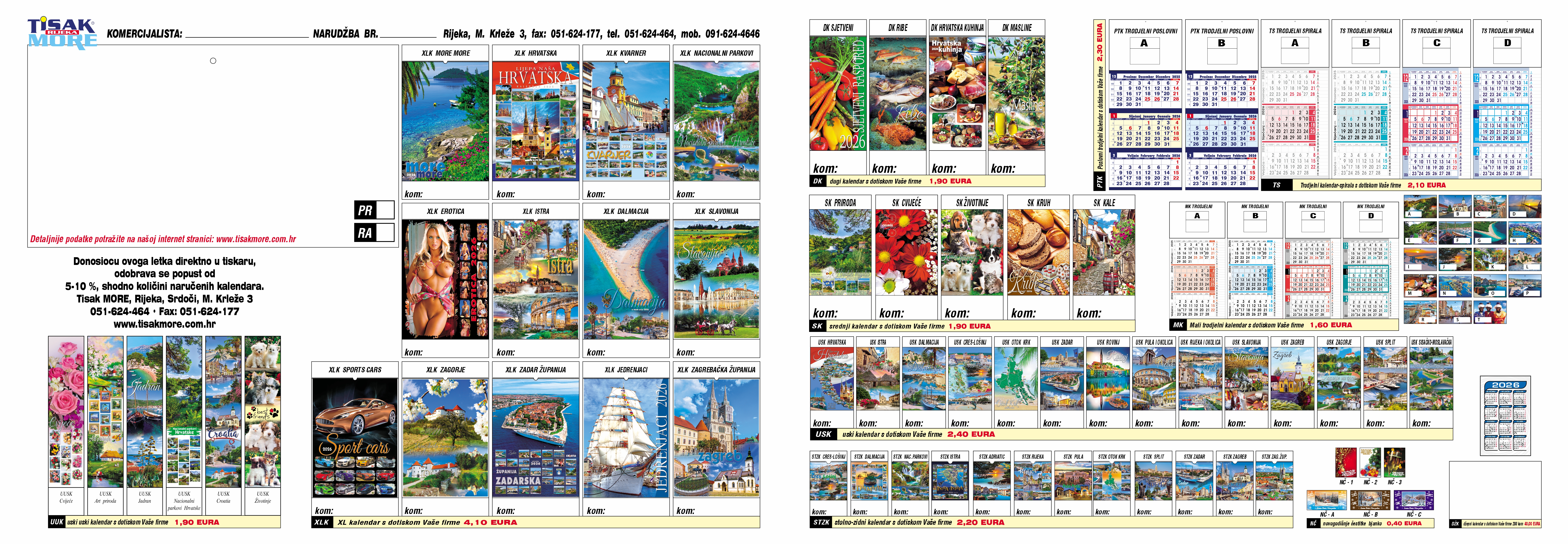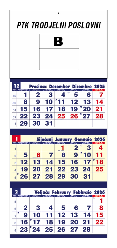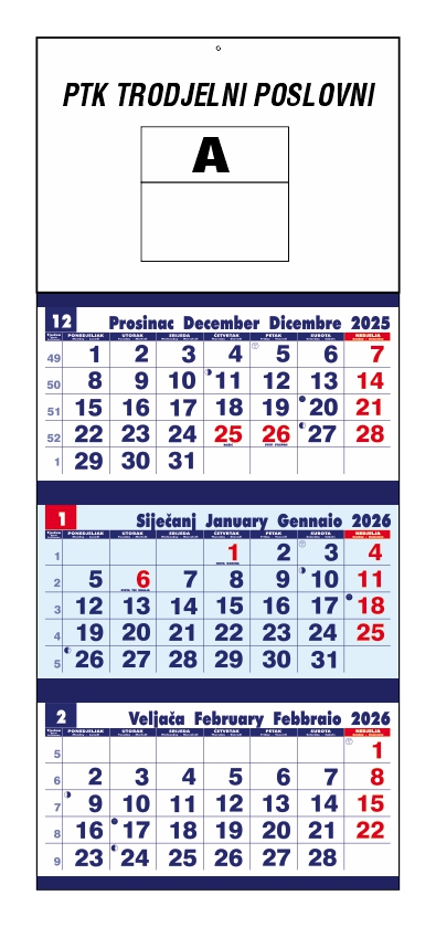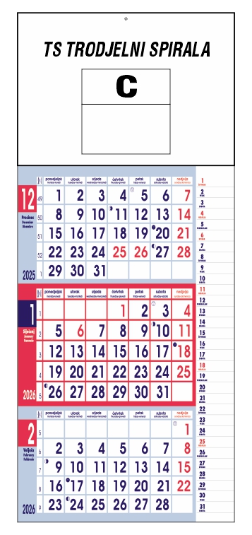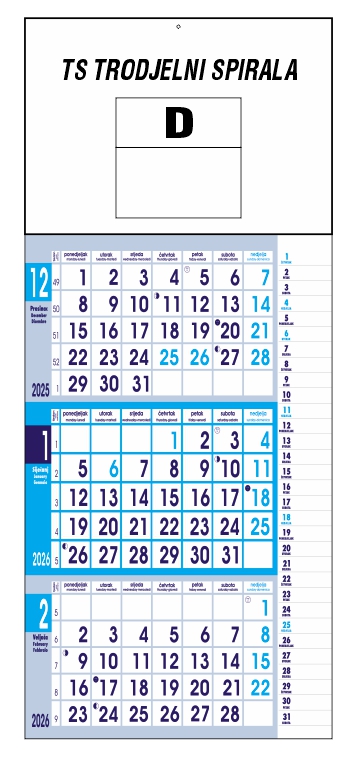 Cijena trodjelnih kalendara sa dotiskom Vaše firme Poslovni trodjelni 2,30 - Spirala trodjelni 2,10 EURA.